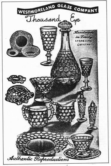 Westmoreland extensively advertised its glassware in newspapers and magazines. A set of Princess Feather dinnerware was even given away on the game show "The Price is Right" in the 1950s (1956-1965). This gallery will show the different ads that have been located. You will see these ads in other galleries too. If you find an ad that you wish to be uploaded to the gallery then please send an email to the webmaster at westmorelandglass@gmail.com