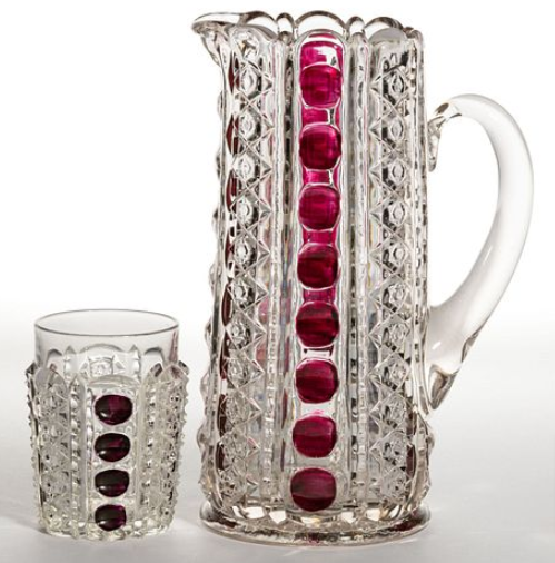 Line 185 Pitcher and Tumbler Ruby Stained, circa 1895-1905
